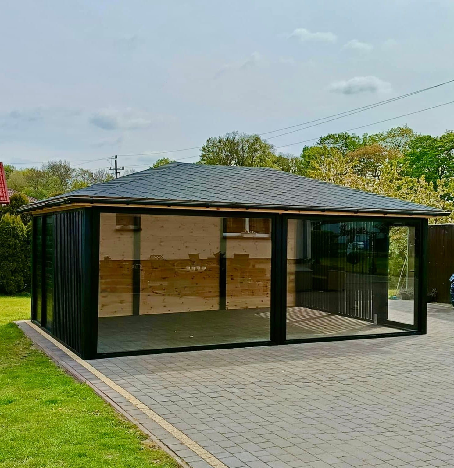 Altana ogrodowa GRANDA Glass Edition 6x4 m – nowoczesna, przeszklona, zabudowana